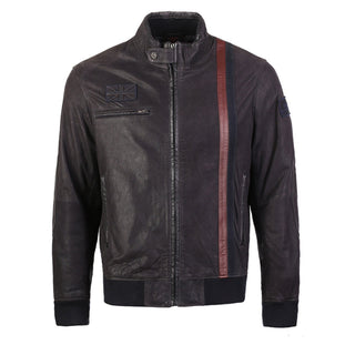 UK Flag Embossed Bomber Leather Jacket with Stripes