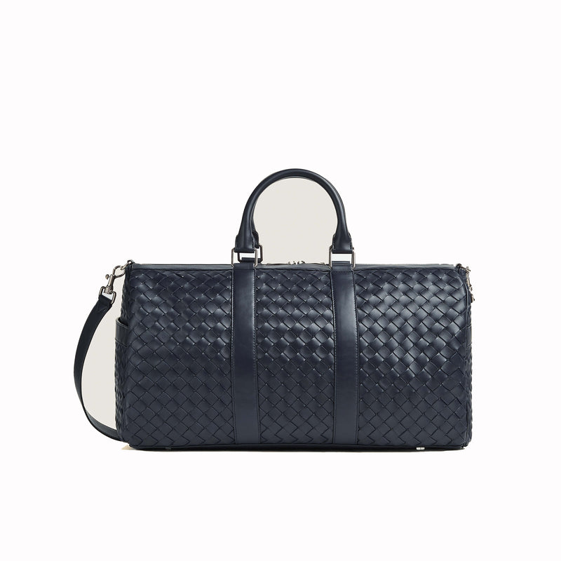 Toby Full Grain Woven Leather Duffle Bag Navy Blue