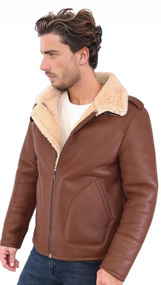 Emre Men's Premium Shearling Leather Jacket Brown